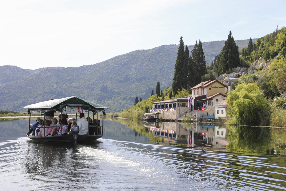 Floden Neretva flyter från Bosnien-Hercegovina och mynnar ut i Adriatiska havet. Trakterna här omkring har alltid varit befästa och betraktade som ett gränsland. Vi ger oss ut på en ungefär en timme lång seglats i det vackra floddeltat som är världskänt för sin flora och fauna. Vi stannar och äter lunch på ett traditionellt värdshus. Kött, fisk och dryck serveras tillsammans med munspel och god stämning! Mätta och belåtna seglar vi sedan den sista biten tillbaka till vår buss som kör oss åter till Neum efter en skön dag i deltat. Båttur och lunch mot avgift.