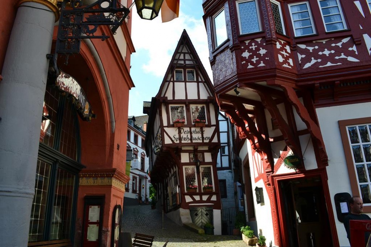 Ovanför Rüdesheim finns det imponerande monumentet Germania, rest till minne av Tysklands enande 1871. Uppifrån terrassen har vi en fenomenal utsikt över Rüdesheim och Rhendalen. Vi hinner också med att utforska vackra Rüdesheim.