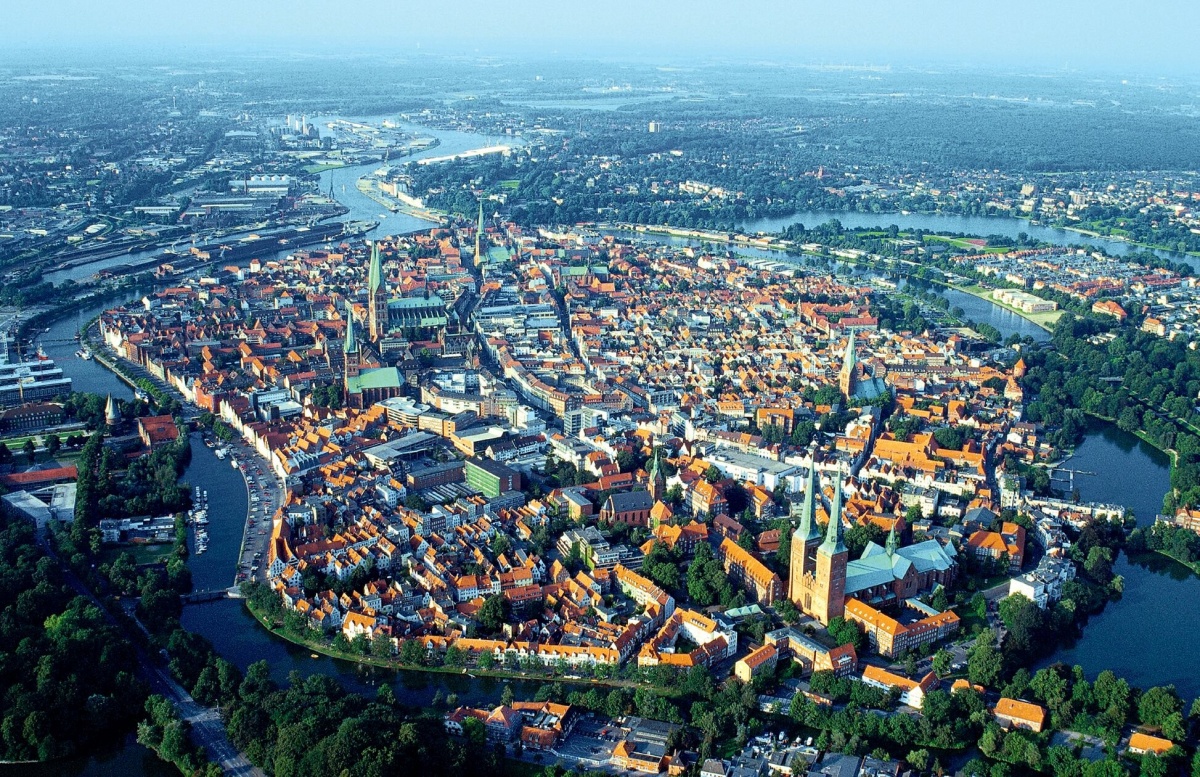 Floden Trave och dess kanaler avgränsar Lübecks innerstad på ett naturligt sätt och det är innanför detta vatten som de flesta av sevärdheterna ligger. Den gamla ledande hansestaden bjuder framförallt sina besökare på välbevarade byggnader, profana såväl som sakrala, uppförda i det för trakten så typiska rödaktiga teglet. Några av höjdpunkterna vi möter är stadsporten Holstentor men även Buddenbrookhuset, som förevigats genom författaren Thomas Manns litterära mästerverk.