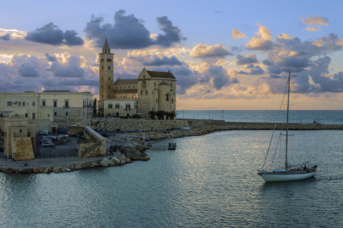 I dag beger vi oss i nordvästlig riktning till sagoslottet Castel del Monte, en fascinerande byggnad med medeltida ursprung (mot avgift, måste förbokas). Fredrik II av Hohenstaufens mystiska jaktslott tycks sväva som en kungakrona över det mäktiga apuliska landskapet. Vad det egentligen användes till träter historiker och forskare om än i dag. De många byggnadsstilarna fascinerar och vi njuter av såväl interiören som utsikten innan vi fortsätter till kustorten Trani, omtalad för sin vackra domkyrka som är belägen alldeles vid Adriatiska havet. Trani är en riktig pärla och vi njuter av den sköna atmosfären innan vi på eftermiddagen återvänder till Bari.